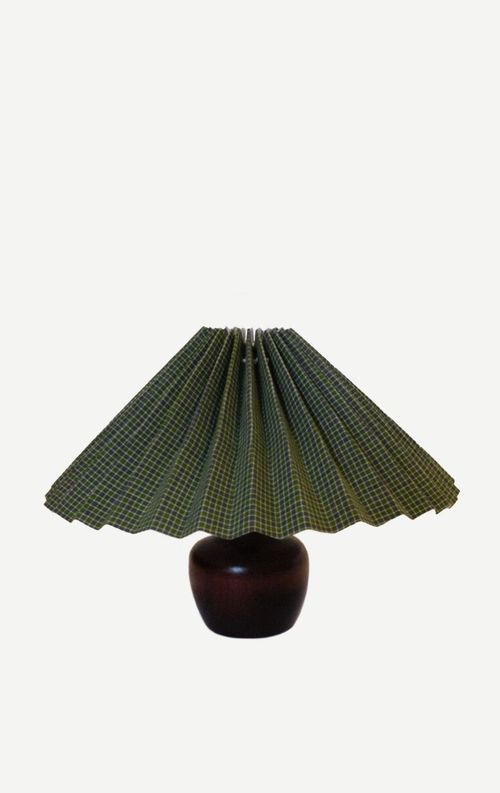 Hand pleated lampshade made with hand woven cotton, a beautiful fine blue/green check. Our lampshades are designed to work together with the lamp bases. The lampshade fabric is backed with a white card lining and mounted on a white wire frame which sits onto the light bulb. Our lampshades are designed to fit candle bulbs, LED bulbs are recommended. Lampshades are made to order, please allow 1-2 weeks.